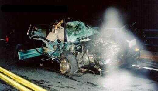 Bei diesem Unfall haben alle Insassen des Autos leicht verletzt überlebt. Beim schiessen dieses Fotos fiel einem Polizisten eine geisterhafte Erscheinung auf. (der Schutzengel?)